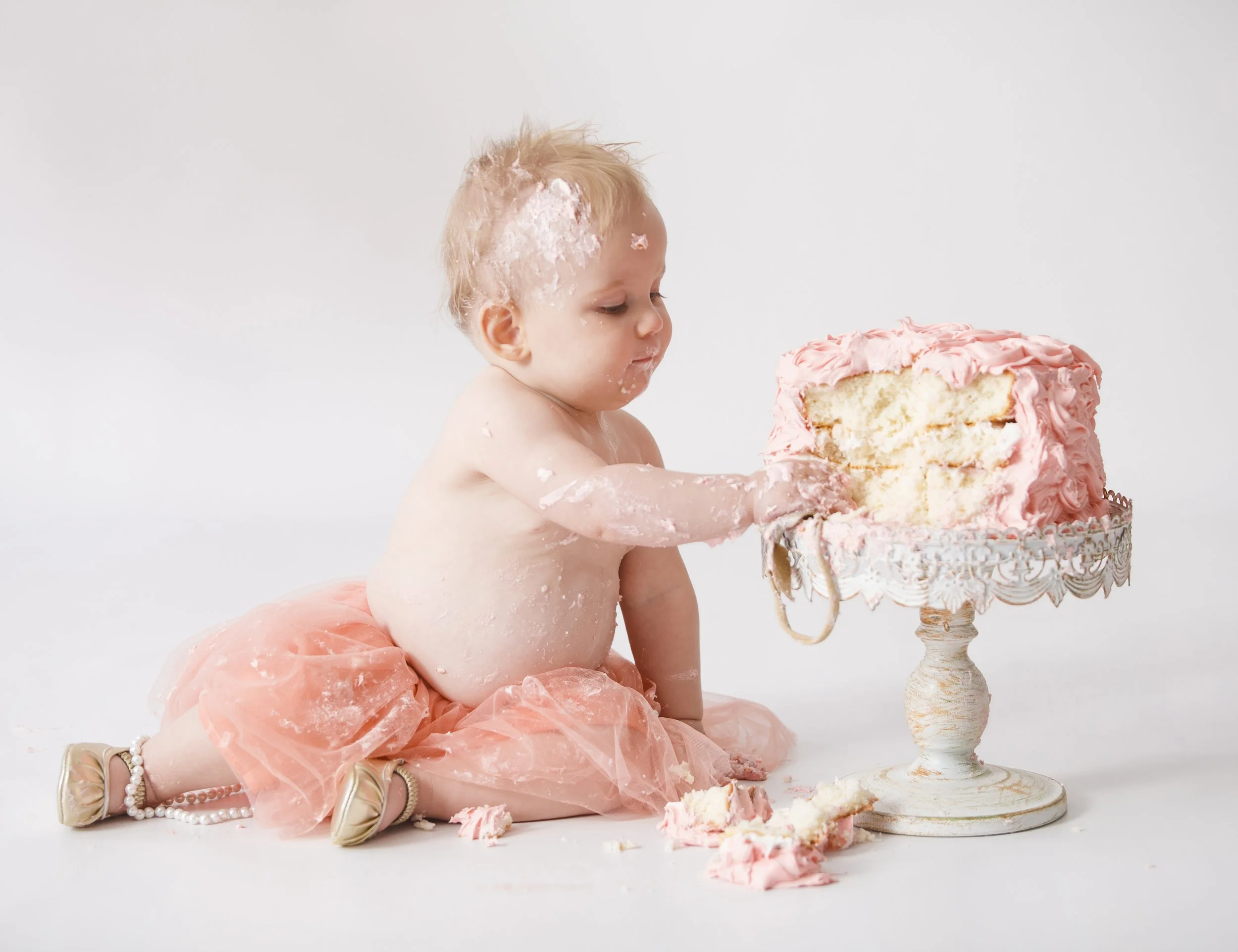 1 hour in-studio ‘Cake Smash’ photoshoot. Includes a custom frosted cake, set with decorations and 10 of your favorite edited images via download. Select additional products from the drop-down menus.